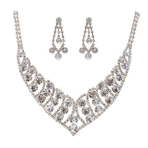 -. Title : ACCESSORIESFOREVERレディースブライダルウェディングジュエリーセットクリスタルラインストーンBubbly Vドロップネックレス