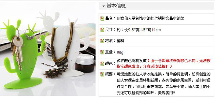 Product Description: the creative life? exaggerated style? to the cactus key jewelryrack people make threatening gestures feeling can be used in jewelry rack dresserdear are hanging on the PP earrings and necklace; can be placed when the key ishanging in the hall? small confused dear do not second days looking for keys and trouble; also you can use it to my dear posted a message or reminder to you? tell him that you want to say to him and to remind the matter; of course? dear can alsowhen it is a decorative ornaments.