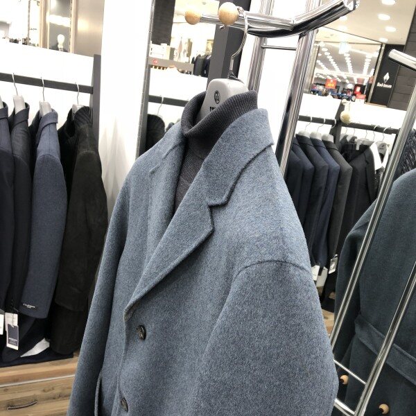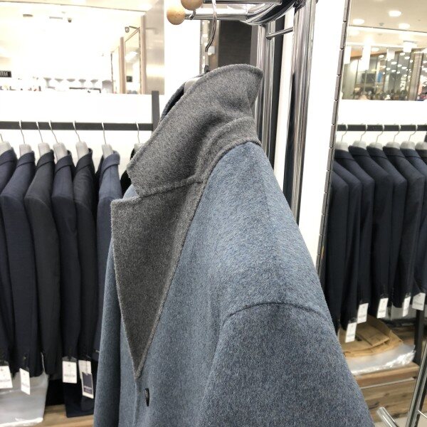 2018F/W 신상품 패딩내피 탈부착 모직 코트로 고급스러운 멜란지 블루칼라로 나온 이중지 쓰리버튼 코트로 세련된 느낌을 주는 모직코트입니다.