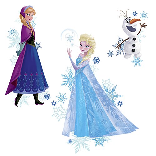 RoomMates RMK2771TB Frozen Anna, Elsa, and Olaf Peel and Stick Giant Wall Decals, 18" x 40"