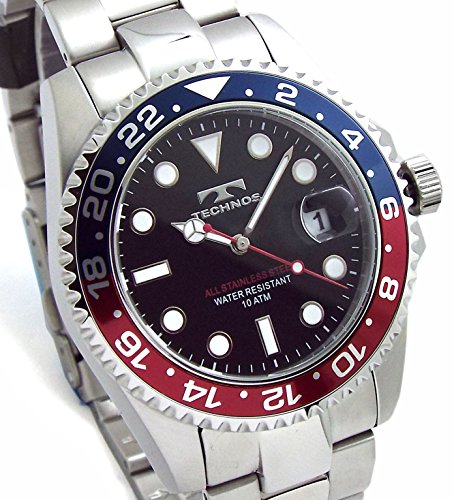 TECHNOS 테크노스 맨즈 손목시계 다이버스 워치 회전 베젤 10기압 방수 블랙 다이얼 청적베젤 벨트 조절 공구세트 SM-412-NB [병행수입품]