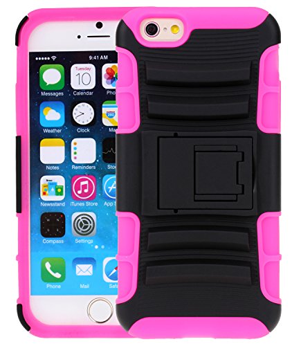 6S Case, iPhone 6s Defender case, SGM (TM) Hybrid Dual Layer Combo Armor Defender Protective Case With Kickstand + Belt Clip Holster For iPhone 6 / 6S (4.7) (Hot Pink + Black)