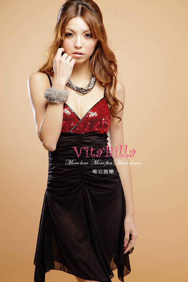 深V低胸设计,缀以酒红色亮片,简单奢华又闪亮耀眼, 吸睛指数瞬间上升,聚集所有目光于一身。