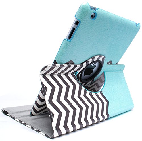 iPad 2 3 4 Case, Bastex 360 Rotating Magnetic Synthetic Leather stand Case Smart Cover For Apple New iPad 4th Generation (Wake/sleep Function) Apple iPad 2, iPad 3(the new iPad) - Teal/Chevron