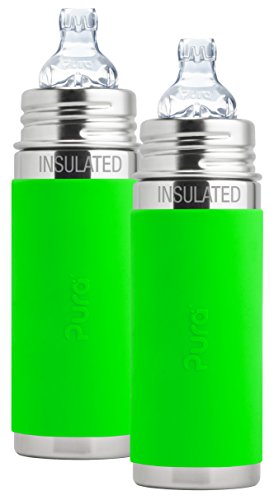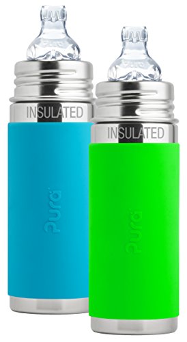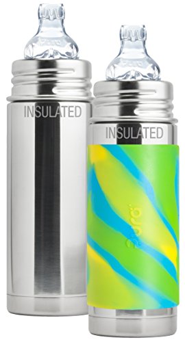 -. Feature : 100% Plastic free bottle compatible with natural vent nipples, silicone sip spout, straw, and sport top from Pura. / Set of 2 bottles - Each bottle includes silicone travel cover, plastic-free Silicone Sleeve and 1 XL Sipper Spout / Crafted from safe, anti-bacterial, #304 stainless steel and medical grade silicone components which contain no plastic, BPA, EA, PVC or other toxins that could leach into beverage / Internal volume marks for easy measuring. Keeps liquids warm or cool for up to 6 hours. / Dishwasher safe and shatterproof. Wide bottle opening makes cleaning with a bottle brush simple.
