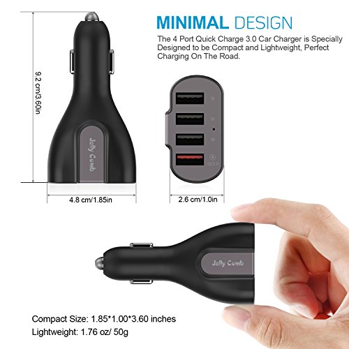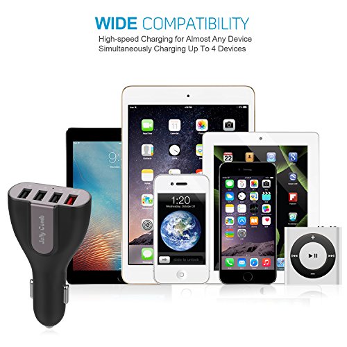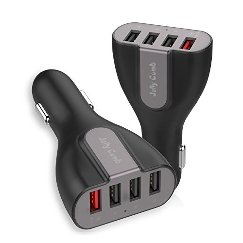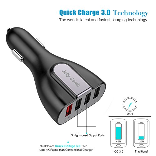 Car Charger, Jelly Comb 54W Quick Charge 3.0 4 Port USB Car Charger Adapter for Galaxy S8, S8 Plus, S7, S6, LG G4, Nexus 6, iPhone 7 Plus, 6, 5S, iPad, Tablet and Android Devices.