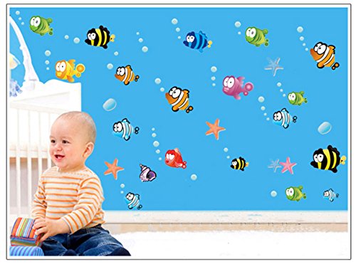 Under the Sea Decals Aquarium The Deep Blue Sea Fishes Decorative Peel Vinyl Wall Stickers Wall Decals Removable Decors for Bedrooms Kids Rooms Baby Nursery Boys and Girls Bedroom