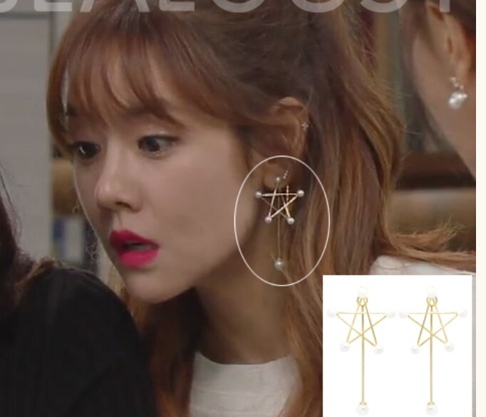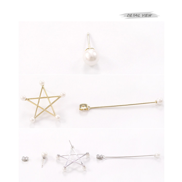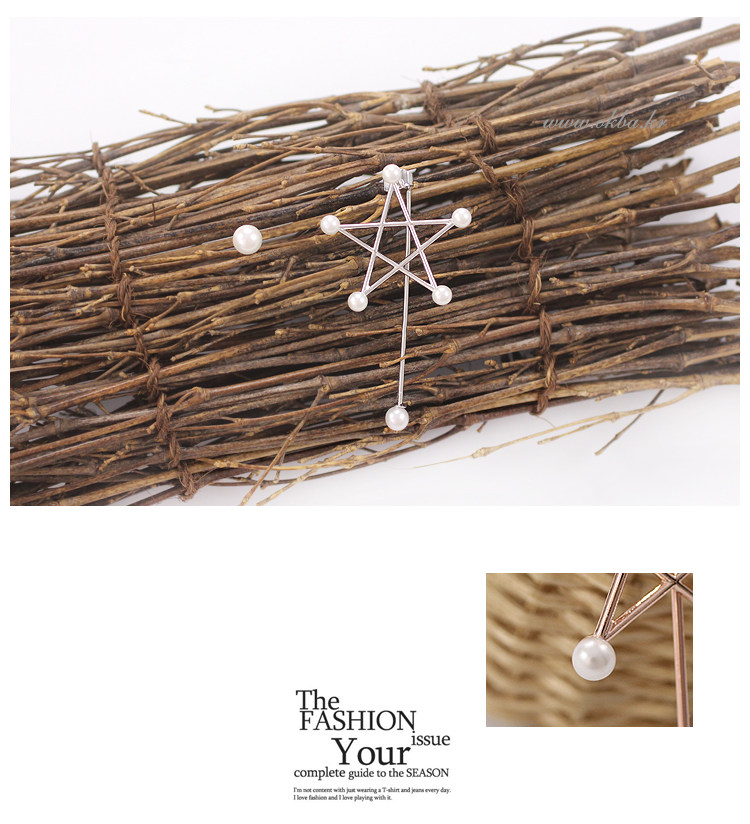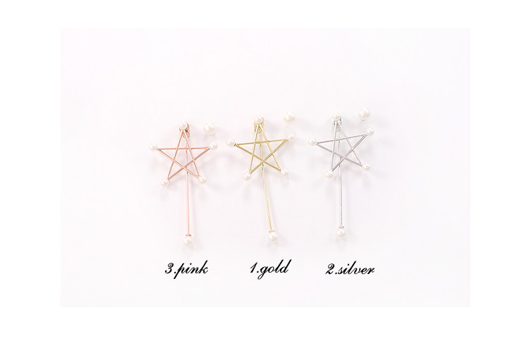 Asymmetric earrings combination, pierced pearl big five-pointed star, the other is a small single pearl earrings, the actual wear is almost single-sided earrings effect, Han Fan full children, the effect is very good ~ ~