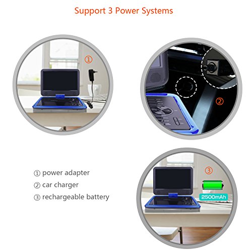 5 Hours Upgraded Battery Capacity ➤ ieGeek dvd player, built with a 2500mAh rechargeable lithium battery, ensures you can use it about 5 hours. And we also provide an AC power adapter and a 1.9m best quality car charger for your daily life and trip.