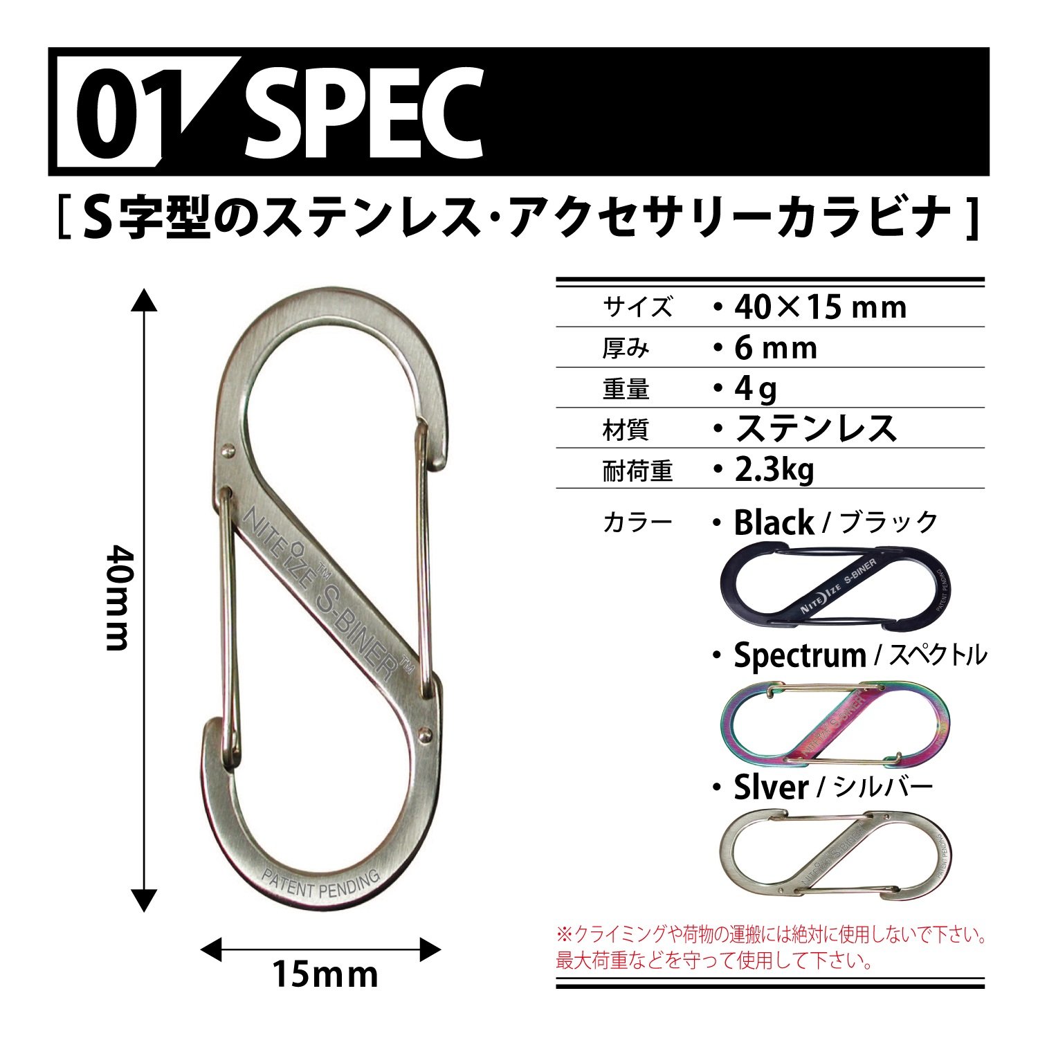 Nite Ize SB1-2PK-01 Size-1 S-Biner Black 2-Pack