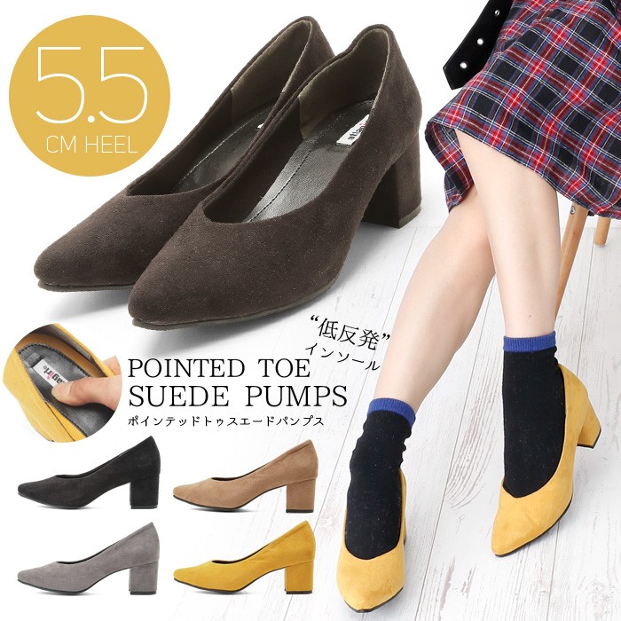 すっきりしたシルエットのトゥ、低反発のクッションヒール。