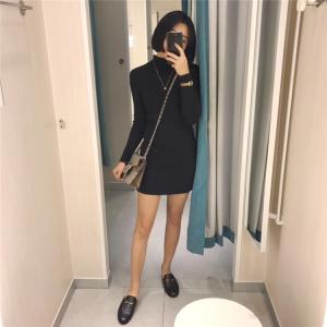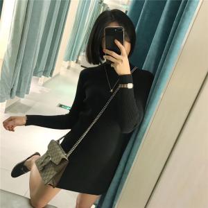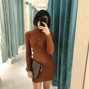 リブニットワンピース ミニ丈ワンピース タイトワンピース 長袖ワンピース ハイネック セクシー 大人ミニ 秋冬