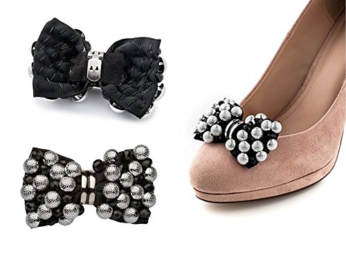 -. Title : La Loria Damen Schuhclips "Sophisticated" in Schwarz-Silber-Weiß mit Schleife, Accessoires für Schuhe (2 Stück)