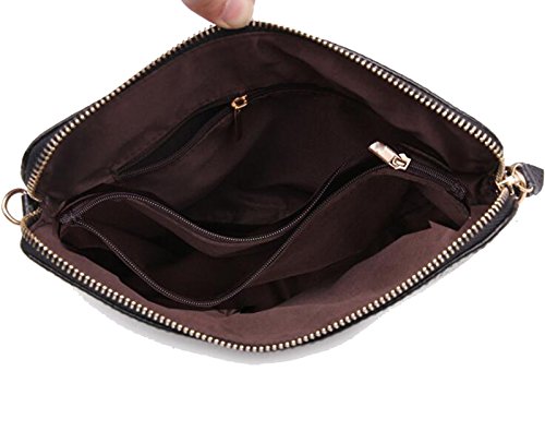 -. Feature : Material: PU leather + lining. Size: 9.8"*7.9"*1" / Comes with removable & adjustable wrist strap and shoulder strap / 2 main interior compartments and 2 zipper pockets for your keys, cards, cell phone, cash, etc. / Can be carried in 3 ways (clutch bag/crossbody bag/single shoulder bag) / A perfect wristlet bag & crossbody purse for you to wear anywhere