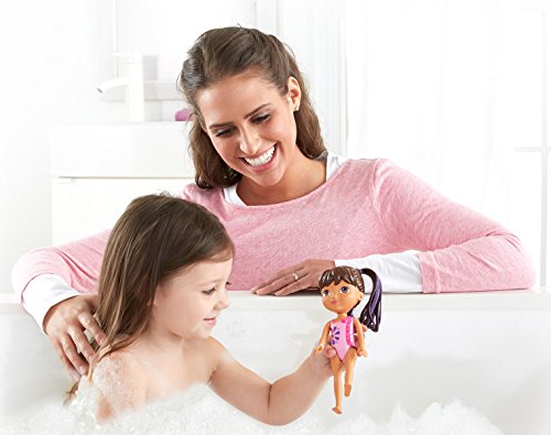 - Warm water magically changes Dora's ponytail highlight from purple to pink!