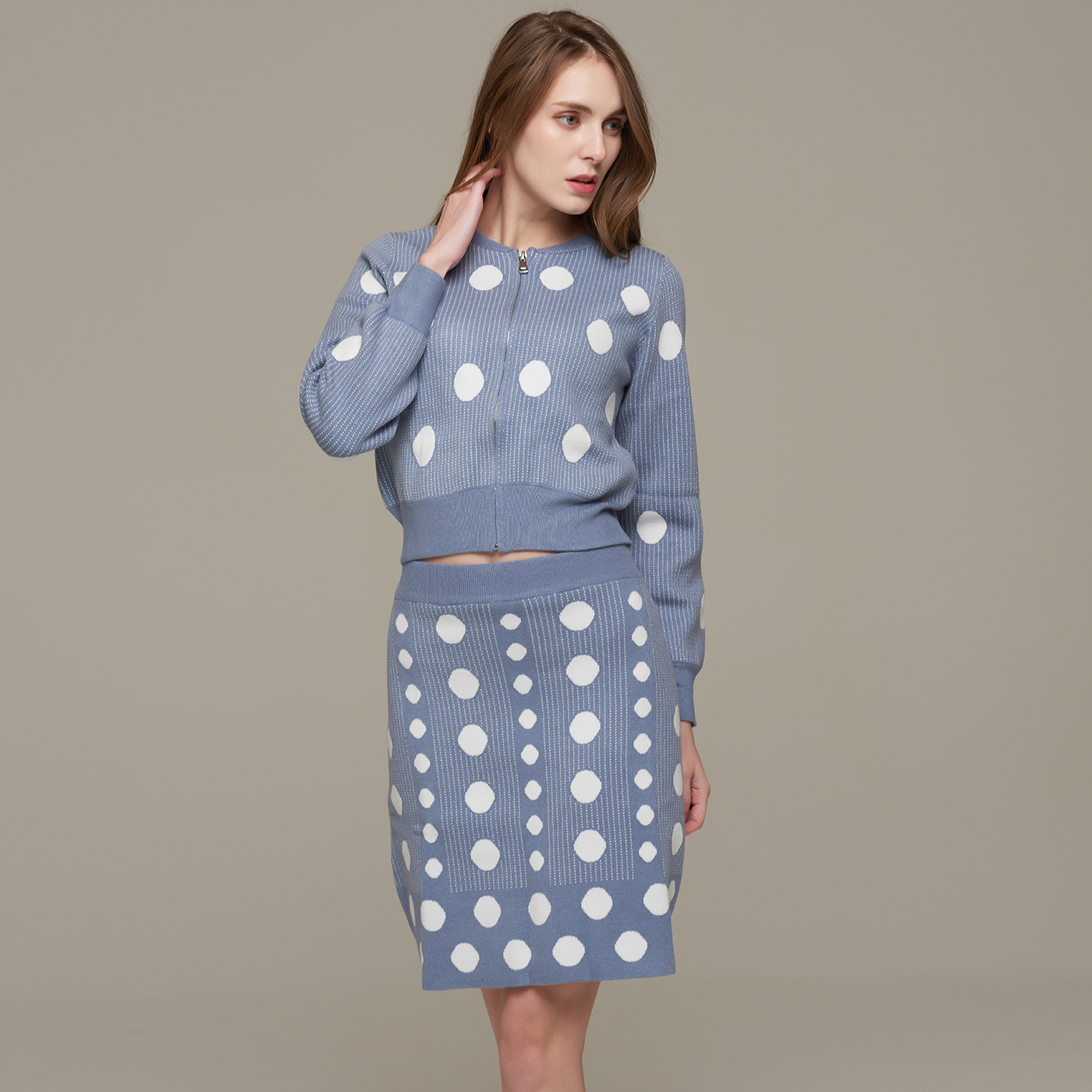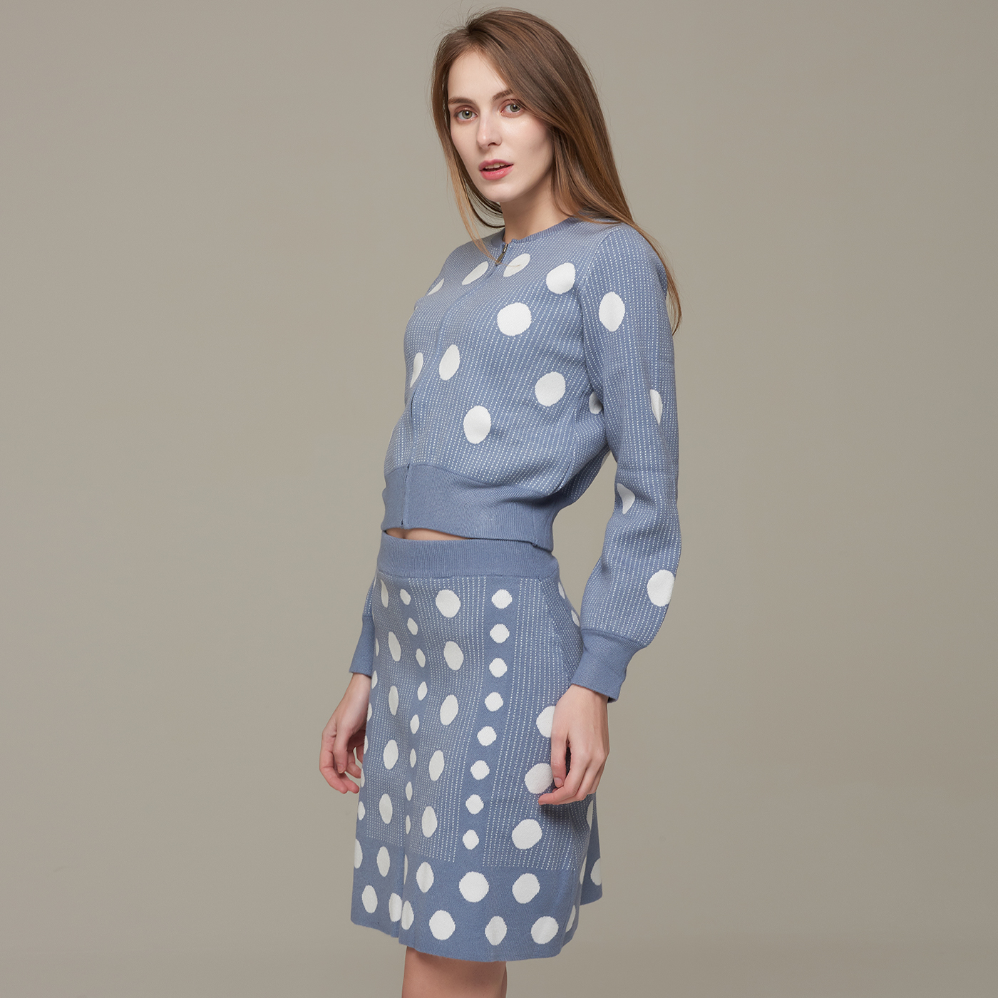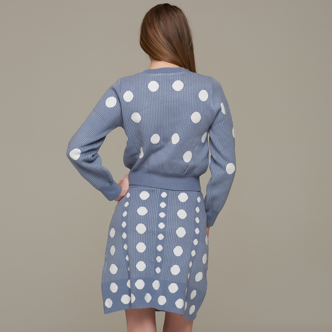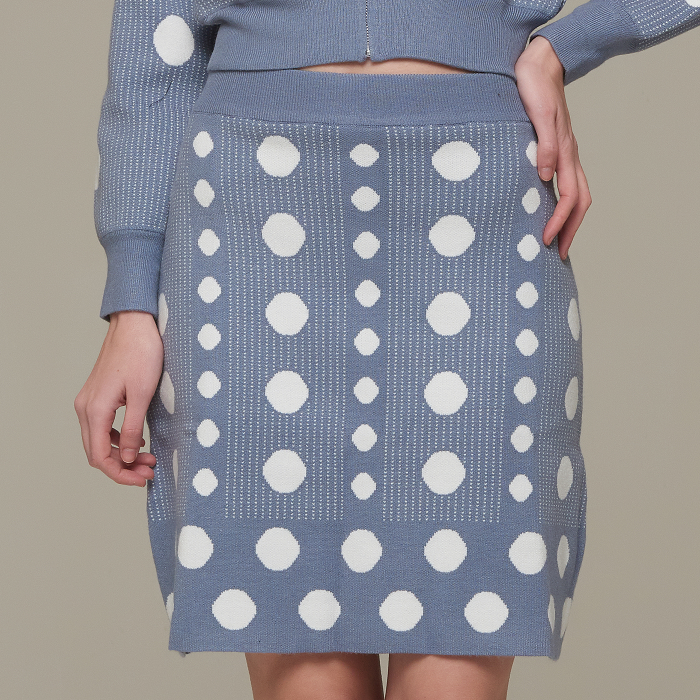 귀여운 도트 패턴 A라인 미니 니트 스커트입니다.