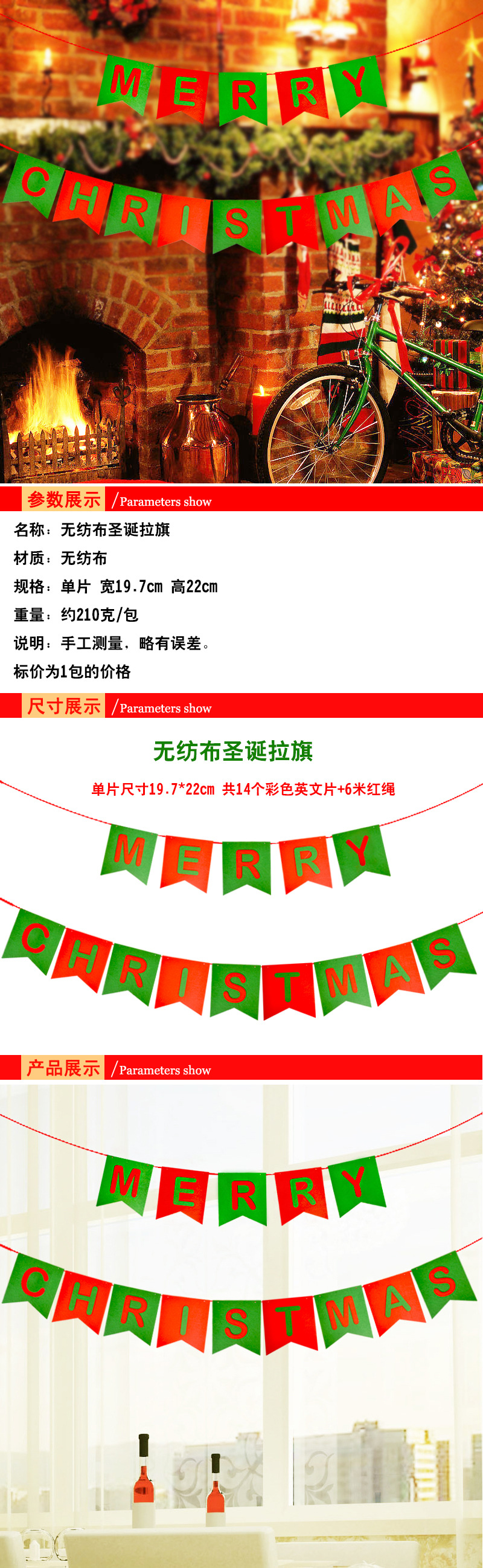 产品名称:大号无纺布贴字Merry Christmas拉旗