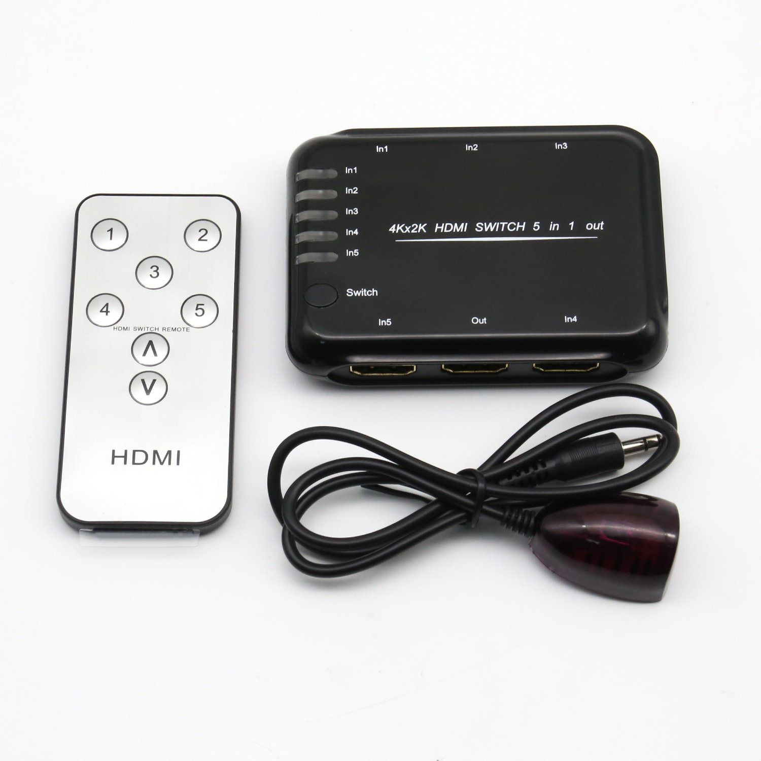 Input: 5 HDMI input female port, IR receiving port