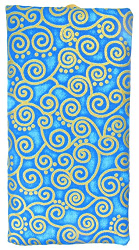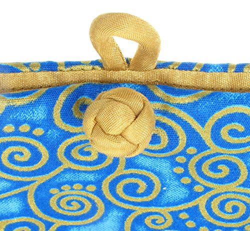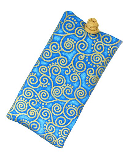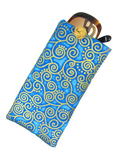Binding : Apparel Product Description A nice and light way to store and secure your eyeglasses or sunglasses and other personal items in your purse. This eyeglass pouch is made from 100% cotton fabric in turquoise blue and gold swirls design and is cushioned with 3 mm. sponge material and lined with coordinated gold raw Thai silk fabric. Accented with a beautiful Chinese knot loop closure. Matching drawstring jewelry pouch and gift bag are also available in this fabric. 0