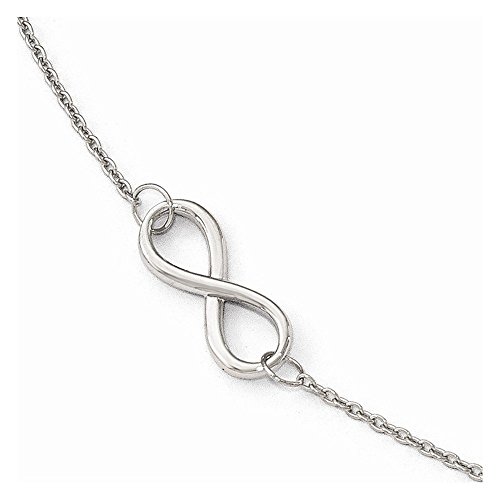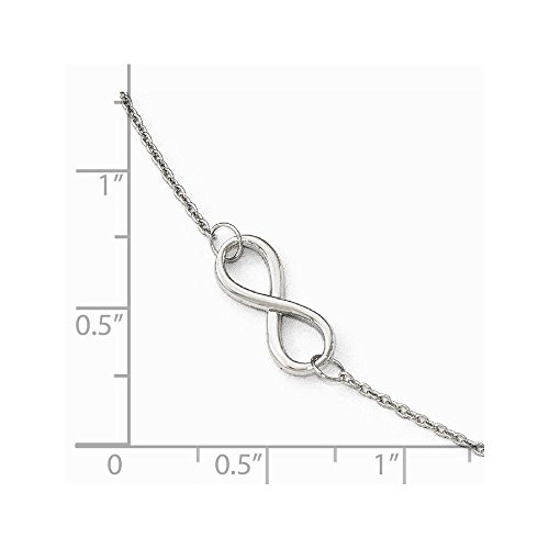 -. Title : 14k White Gold Polished Infinity with 1in ext. Anklet 9 Inches Long