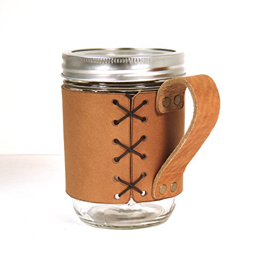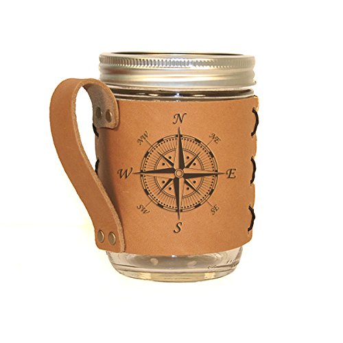 Compass - Leather Sleeve with Handle for Wide Mouth Mason Jar -- Leather Mason Holder…