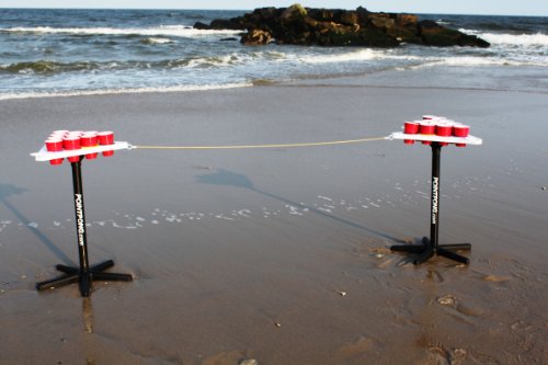 Regulation size, the only set that comes complete with 2 tables, cups, balls and carry bag and it FLOATS in the water.