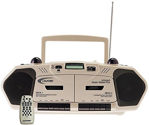 The Wireless Music MakerPlus supports phonemic awareness, phonics, vocabulary, ELL, ELD and other language learning programs. Built for reliability in schools, it delivers classroom flexibility with dual cassette recorder / players, 20 track programmable CD player and AM-FM stereo. Built-in wireless listening center capabilities for up to 20 students with 34B-IR headphones (sold separately) Full fidelity audio to the entire class delivered from this digital AC/DC Cassette Recorder/CD Player/AM-FM Radio, now includes remote control Multiple inputs for headphone, listening center and for added speakers to create added lesson flexibilityFeature