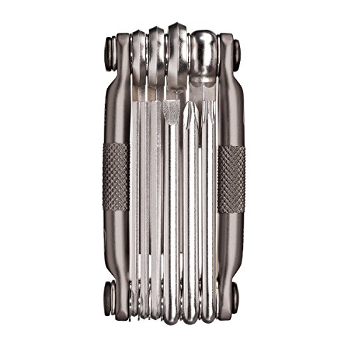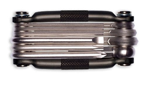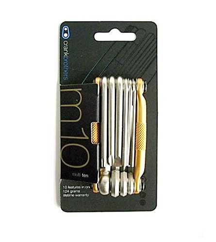 Studio : Crank Brothers Publisher : Crank Brothers Binding : Sports Product Description CrankBrothers Multi-10 Tool The Crank Brothers Multi 10 Tool has a design that's simple and functional. It features 10 basic tools for essential tightening and adjustments, with a few welcome extras that the minimalists generally miss, like Phillips head and flathead screwdriver bits, and a T-25 Torx driver for the hard-to-fit mystery bolts on your disc brakes. Of course the Multi 10 also has the ubiquitous Allen wrench set, and Crank Brothers' comforting lifetime warranty should you somehow manage to break it. Specs: Weight - 124 grams; Length - 3.5 inches; Frame - 6061-T6 aluminum; Tools - 6051 high tensile steel.