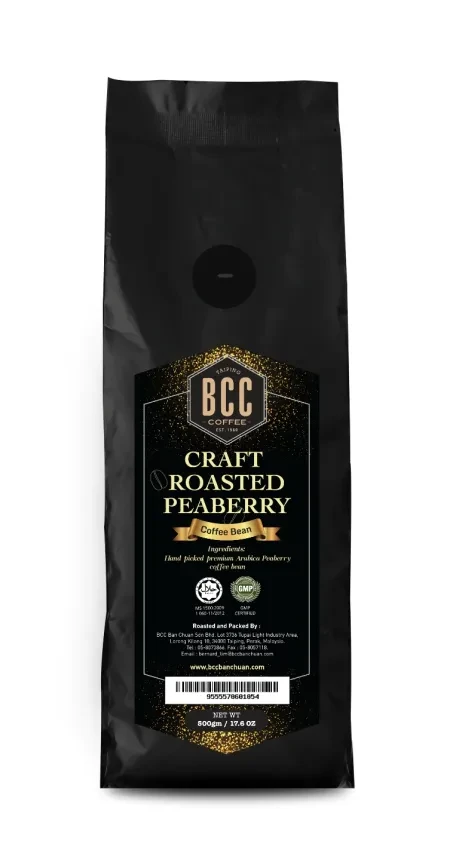 A peaberry, is a natural mutation of the coffee bean which has only a single, smaller and denser bean inside a coffee cherry. Normal coffee beans grow two inside a coffee cherry. This precious and unique bean only happens in about 5% of the world's coffee. BCC Ban Chuan Peaberry Coffee Bean is hand harvested in a small, natural and refreshing forest area with altitude above sea level 3300ft in teh highland region of Myanmar. Together with our traditional small batch craft roasting method, you will exprience the perfect balance of smooth, fruity taste and rich aroma of this specialty coffee.