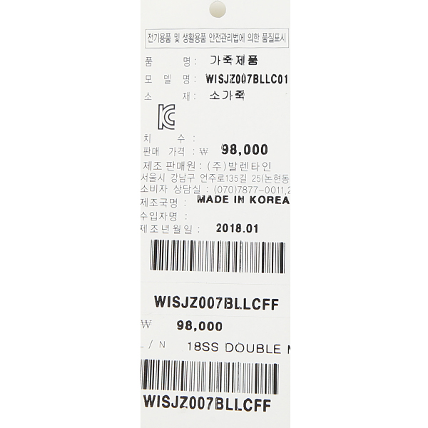 소재;소가죽100%
