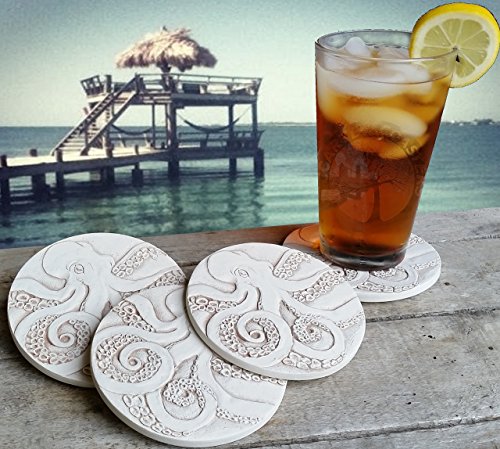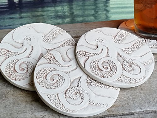 -. Title : Drink Coasters by McCarter Coasters, Octopus, Absorbent, Light Beige 4.25 inch (4pc)
