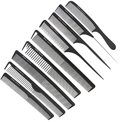Mythus 9 Piece Black Hairdressing Carbon Comb Kit For Haircut Anti Static