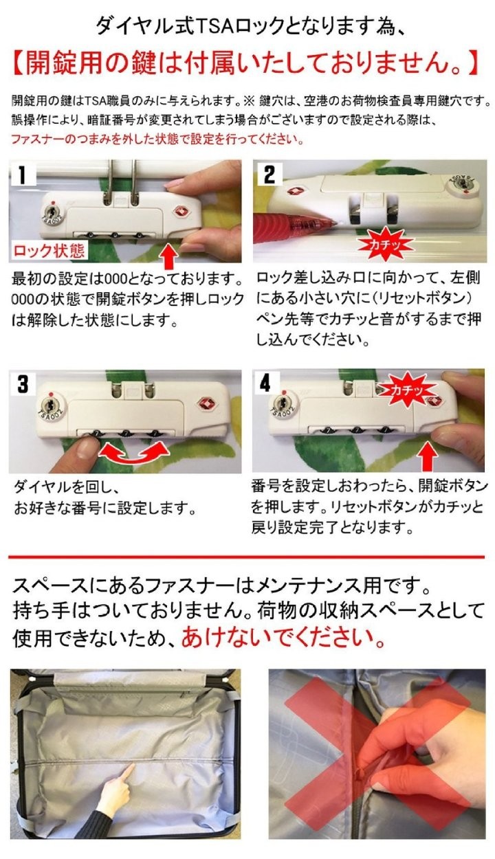 (鍵式TSAロック)アメリカ方面の旅行でも安心!