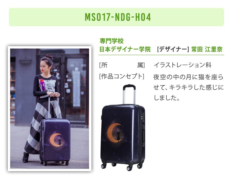 薄肉化を計った高剛性を持つABS樹脂表面には、いざという時の衝撃に強いポリカーボネートでコーディングすることにより、軽さと強さを両立したボディを実現しました。美しい光沢を持つシンプルなデザインが、旅のさまざまなシーンに調和します。