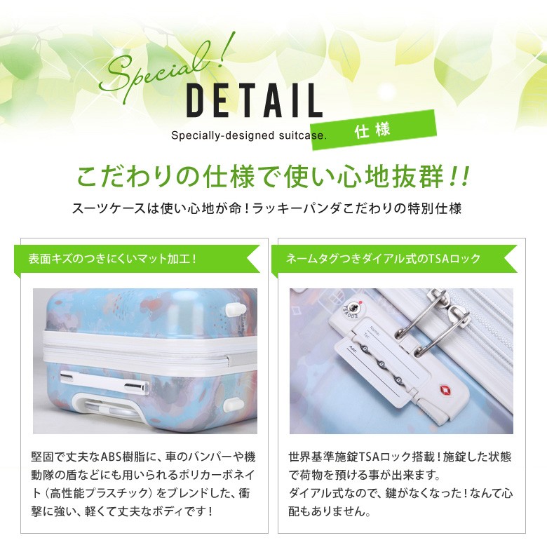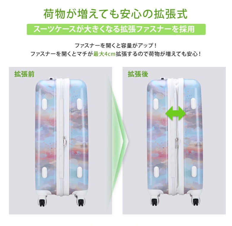 送料込 安心保障 おしゃれ 安い 中型 スーツケース超軽量 TSAロック ファスナータイプ 本体サイズ:約縦60cm×横41cm×奥行26-30cm キャスター・部品など含む外寸:約縦68cm×横44cm×奥行26-30cm容量:約64-73L 重さ:約4kg 素材:ABS樹脂+ポリカーボネイトコーティング アメリカブランド360°回転4輪静音キャスター使用 キャリーバー段階調節可。 ※サイズについては若干の誤差はご容赦ください。掲載写真については、モニターにより若干の色違い場合がございます。 キャリーバッグ キャリーバック キャリーケース 旅行用 トランク 旅行かばん 旅行バッグ ブランド スーツケース 人気 ランキング かわいい 激安 軽量 女性 男性 レディース メンズ ビジネス 子供用 トランクケース Lサイズ 早期割引機能に対する値段が安い!軽量!