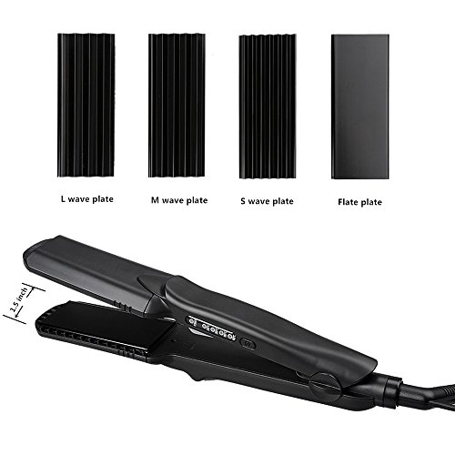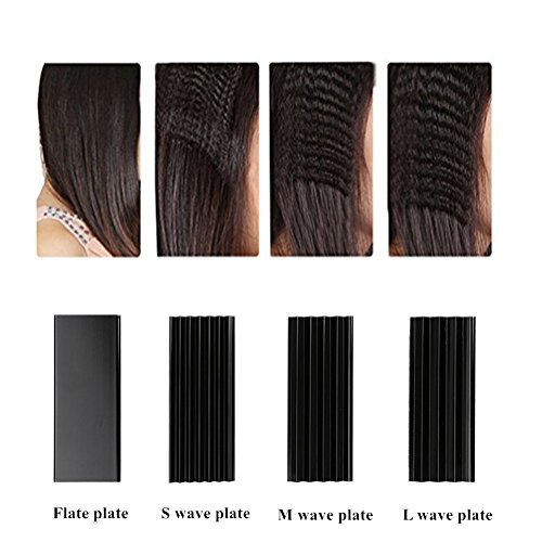 - 4-in-1 interchangeable plates hair styling tool, contains L wave plate, M wave plate, S wave plate and flat plate.