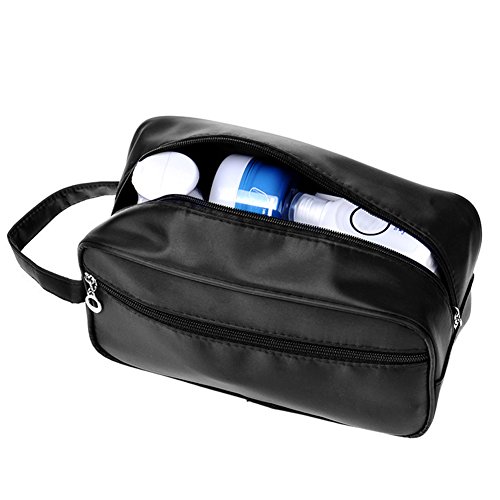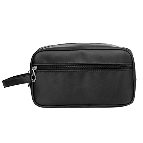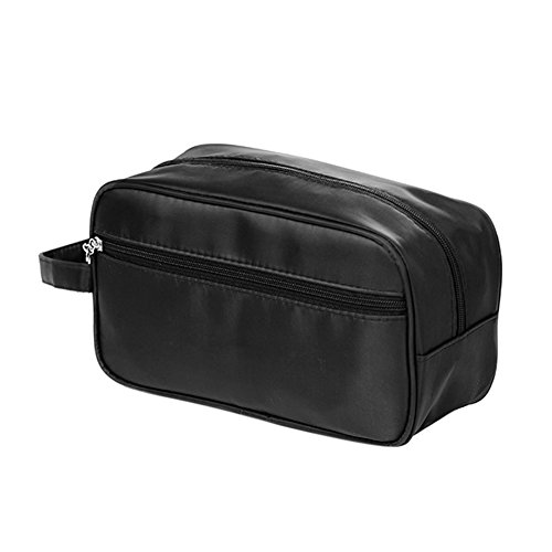 -. Feature : The measurement of this shaving bag is: 26 x 15 x 10cm / 10.24 x 5.91 x 3.94inch, big enough for storing all the travel essentials / The exterior is made of superior nylon, it features lightweight and durable, also soft and comfortable to touch. The waterproof inner lining made this toiletry bag easily to clean if the fluid or gel items leak out during the trip / Double zippered compartments designed for storing various stuffs, separating the shaving accessories from fluid items, more convenient for the journey / A side carrying strap can be used to carry it or hang it on a hook in the bathroom. Quickly grab it and go if you are in a hurry, saving times from you / This PU leather toiletry bag is a perfect gift for your father, husband or boyfriend if you don't know what to buy for Christmas, anniversary or birthday
