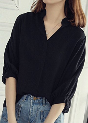 -. Title : (ゴラッソ)GOLAZO Vネック シフォン スキッパーシャツ ドルマン袖トップス バックボタン とろみ きれいめ レディース