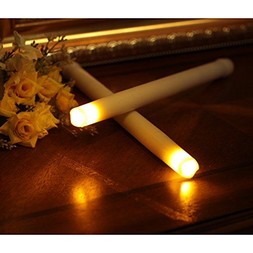 REALISTIC & SPECIFICATIONS: Made from real high quality wax, feels and looks like a real taper candle. Blinking slowly, like a real candle flame. 9 inches high. Package of 2.
