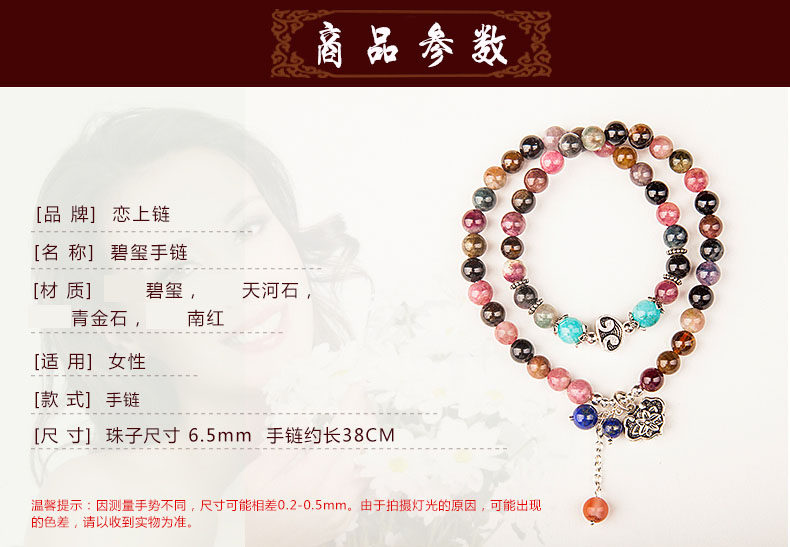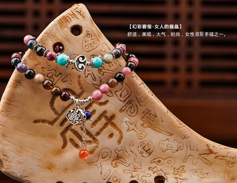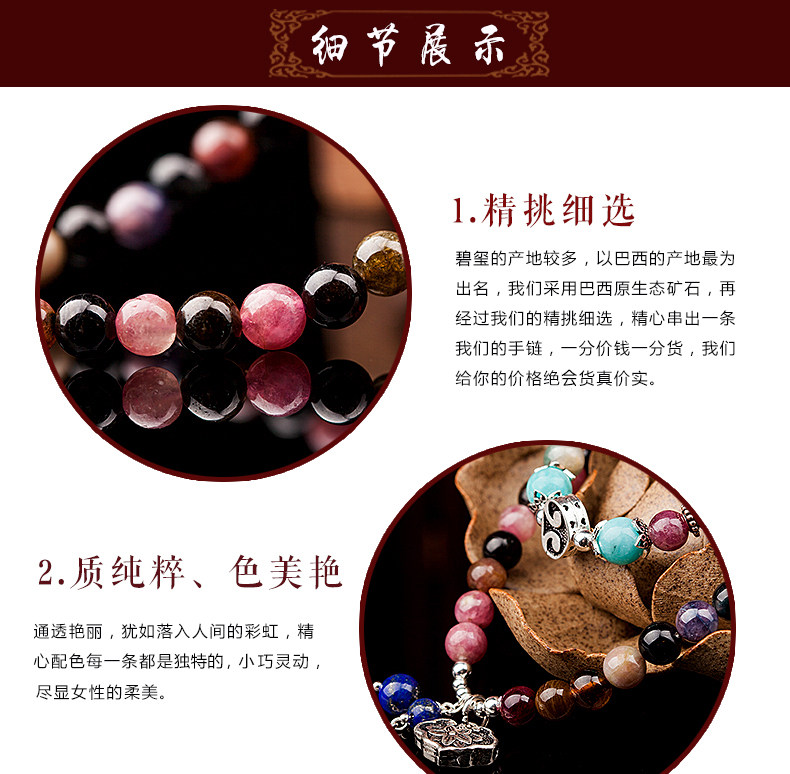 彩虹碧玺手链 女两圈多圈手串 配青金石925银饰品