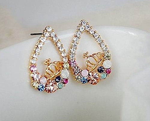 -. Title : ペアシェイプ王冠ピアス ラインストーン 涙型ピアス AC-023
