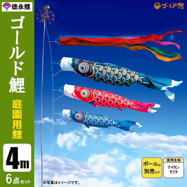 | ゴールド鯉 庭園用大型鯉のぼり 杭打込式ポール付セット | 1.5m鯉3匹 | 2m鯉3匹 | 3m鯉3匹 3m鯉4匹 3m鯉5匹 | 4m鯉3匹 4m鯉4匹 4m鯉5匹 |