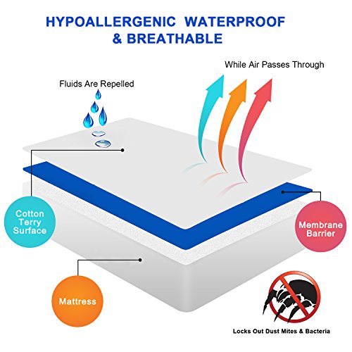 -. Title : HOMEIDEAS Premium Mattress Protector(Queen) -100% Waterproof,Hypoallergenic,Dust Mite&Bed Bug Proof,Vinyl Free-Terry Cotton Topper-Fitted Sheet Style