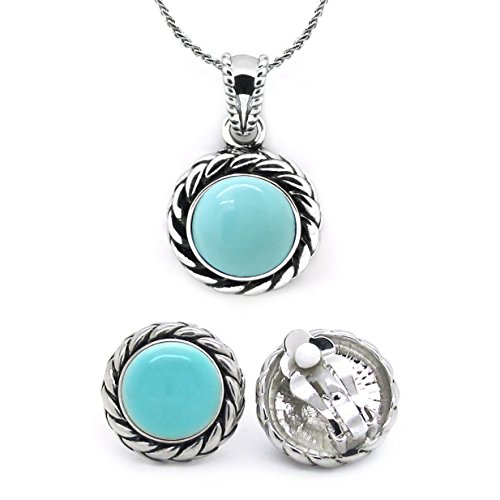 -. Binding : Jewelry -. Brand : Sparkly Bride -. Department : womens -. Feature : Jewelry set comes with pendant necklace and matching clip-on earrings. PENDANT: Size is approximately 0.9"W x 1.2"H. Chain is 18" with additional 2" extender. EARRINGS: Diameter is about 0.9". Backings are clip-on style. For Non-pierced Ears. / Base metal alloy / Rhodium Plated / Light Blue Resin / Backings are Clip-on style. For Non-pierced Ears. -. Label : Sparkly Bride -. Manufacturer : Sparkly Bride -. Model : DLSET101-Q-CLIP -. MPN : DLSET101-Q-CLIP -. PartNumber : DLSET101-Q-CLIP -. ProductGroup : Jewelry -. ProductTypeName : FASHIONOTHER -. Publisher : Sparkly Bride -. Studio : Sparkly Bride -. Title : Vintage Jewelry Set Braided Light Blue Resin Pendant Necklace Matching Clip On Earrings Women Fashion