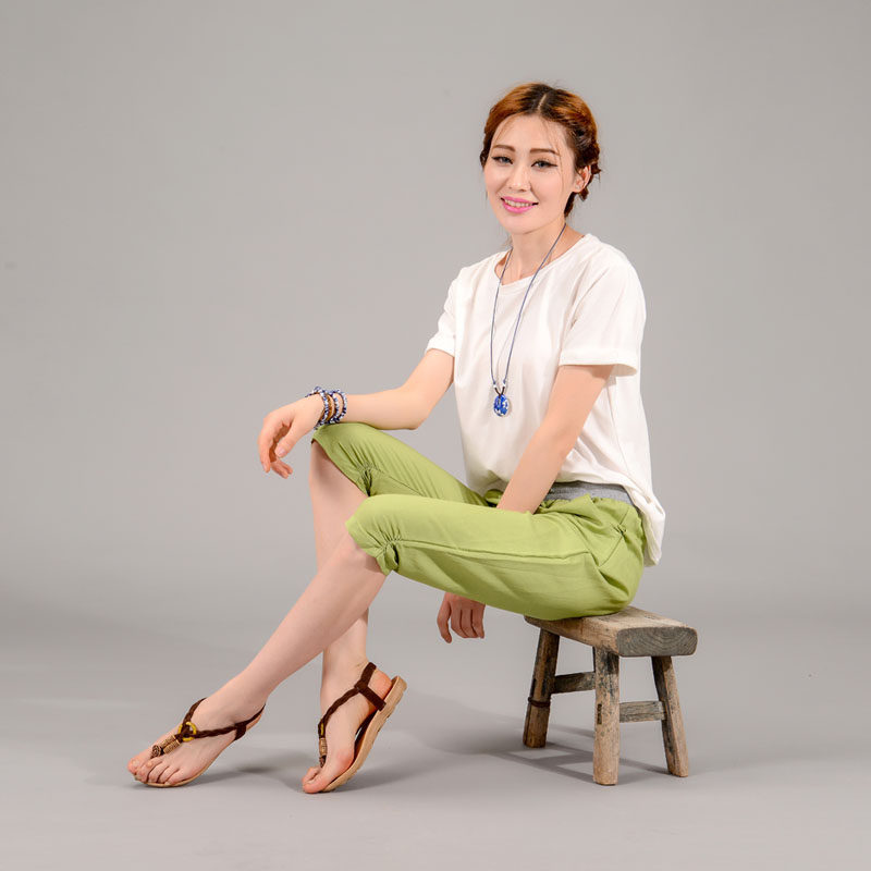今日团购: 亚麻女裤棉麻七分裤裤子女士夏季七分哈伦裤女款夏薄
