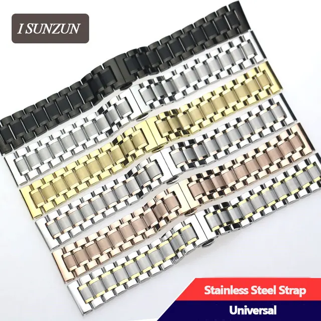 | [해외]ISUNZUN 새로운 핫 스테인레스 스틸 손목 스트랩 남성/여성 기계식 시계 스트랩 나비 버클 14-24 미리메터 팔찌 범용 |