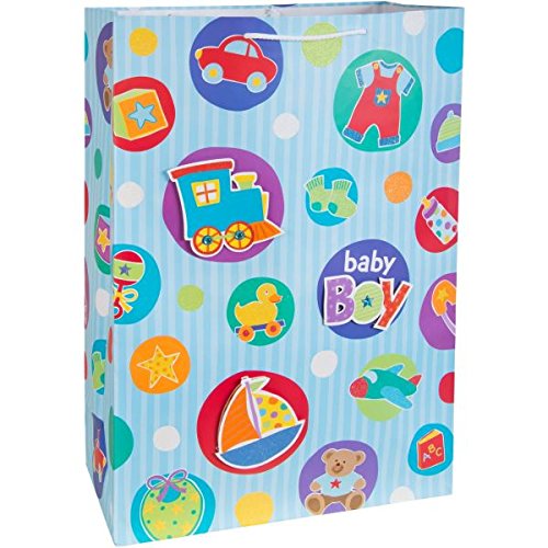 Adorable Baby Boy Things Giant Specialty Bag Party Supply, Blue, Paper , 23" x 16" x 8"