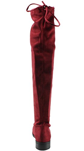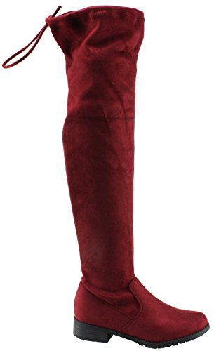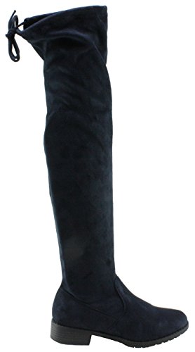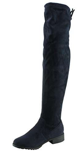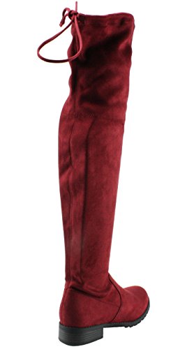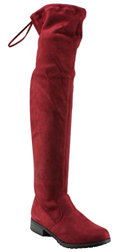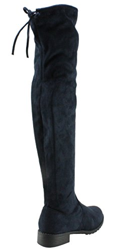 Forever Women's Jalen-H4 Faux Suede Drawstring Low Heel Over the Knee Boots