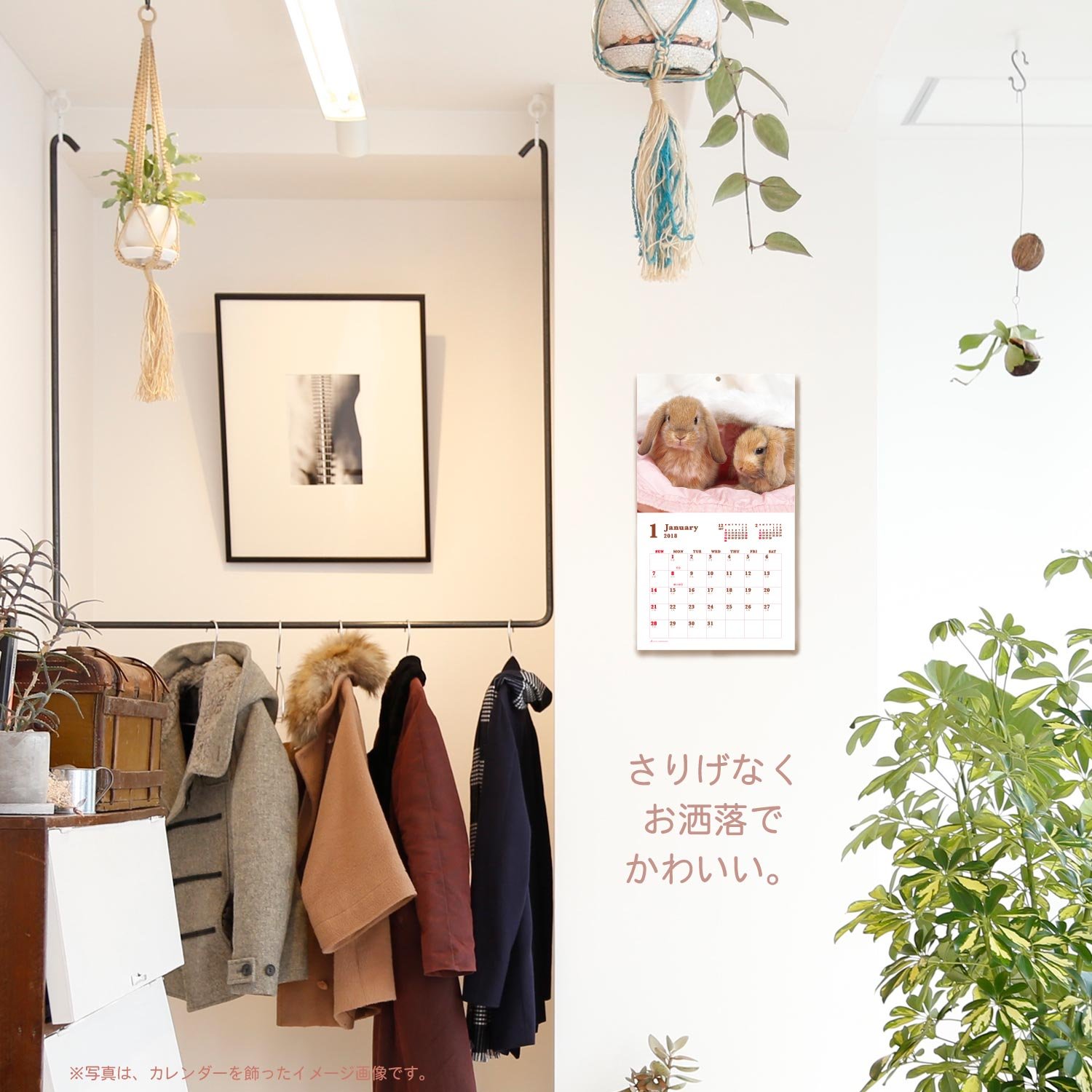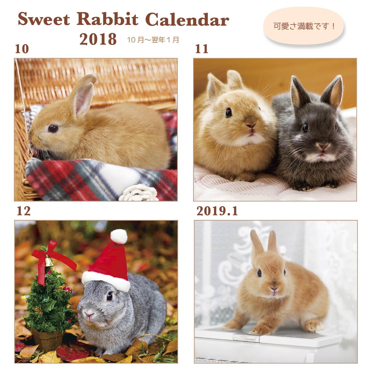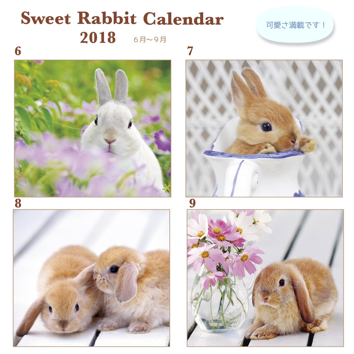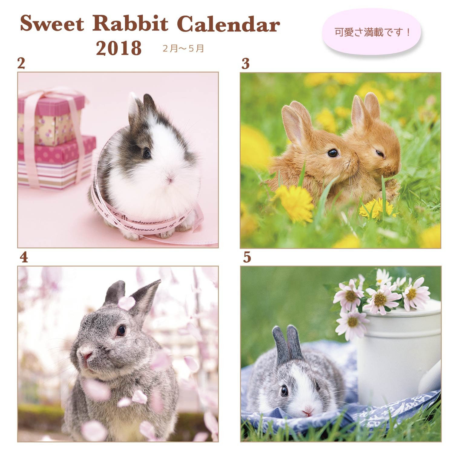 It is a wall-mounted calendar with plenty of pictures of cute rabbits.