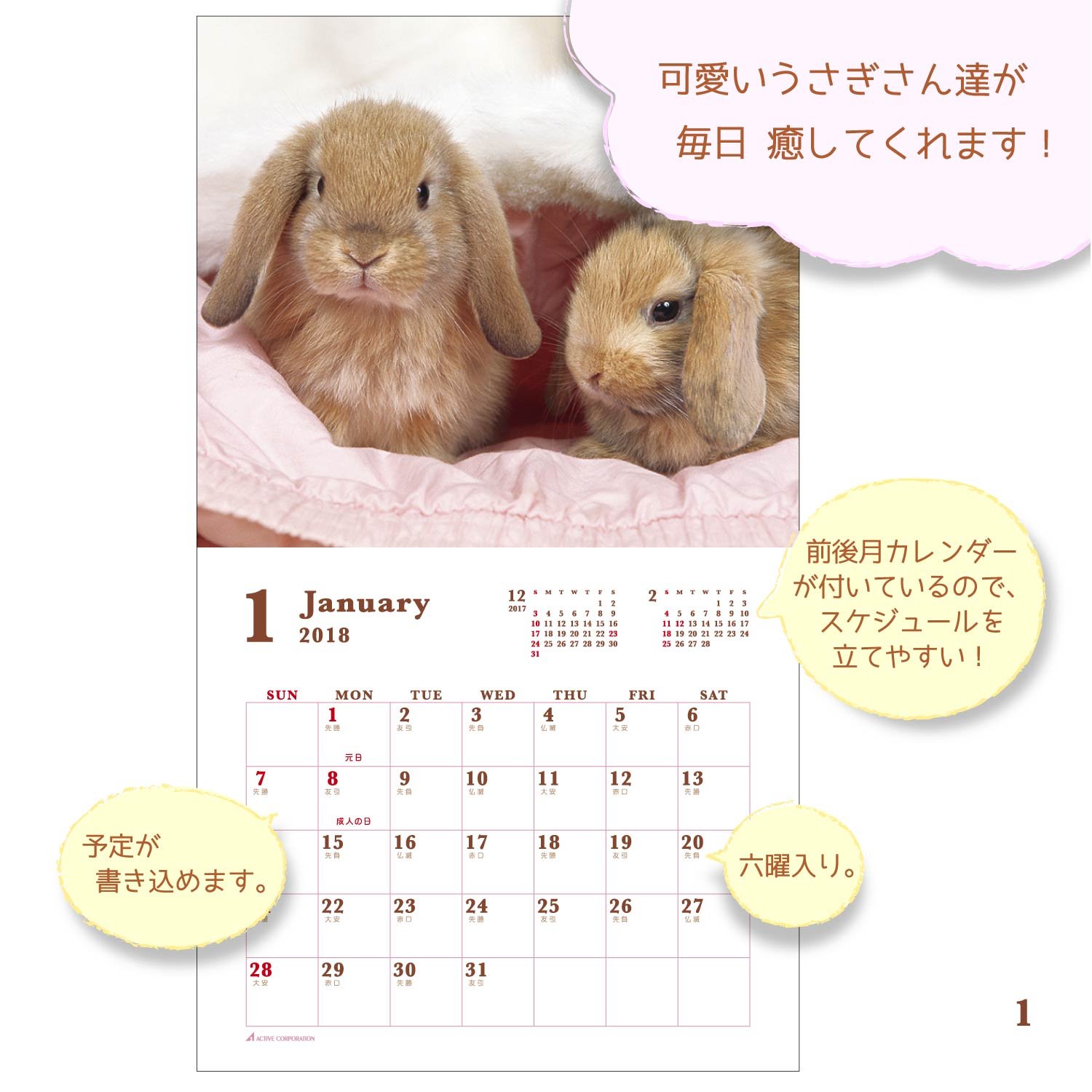 Product Name: Active Corporation 2018 Rabbit Calendar Wall Hanging Suite Rabbit ACL-36